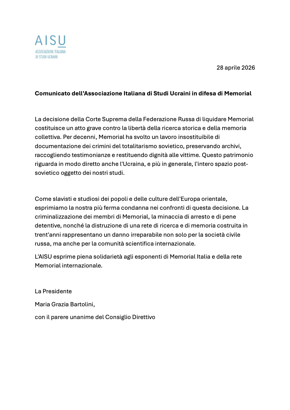 L’Associazione Italiana di Studi Ucraini (A.I.S.U.) è un’associazione culturale senza fini di lucro fondata il 9 marzo 1995 da Gianfranco Giraudo (1941-2024). Già nel 1989 l’Italia aveva ospitato a Napoli e Ercolano un Congresso Internazionale che aveva segnato una tappa importante nella presa di coscienza dell’esistenza della realtà culturale e storica dell’Ucraina negli ambiti accademici e politici italiani, e occidentali in genere. In quell’occasione avvenne infatti la fondazione dell’Associazione Internazionale degli Ucrainisti (MAU), che con la sua intensa attività scientifica e convegnistica ha aiutato a ridisegnare i contorni della disciplina in Europa occidentale.